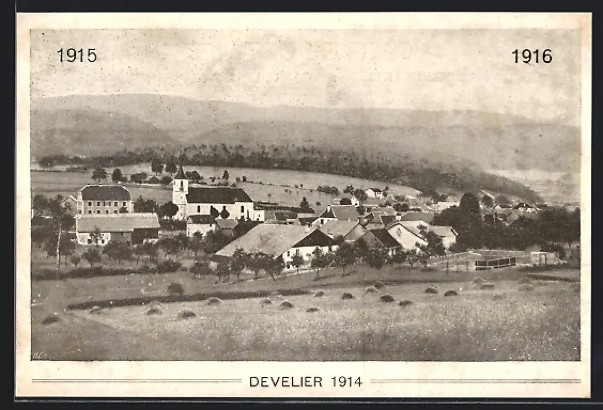 AK Develier, Teilansicht mit Kirche 1914-15-16