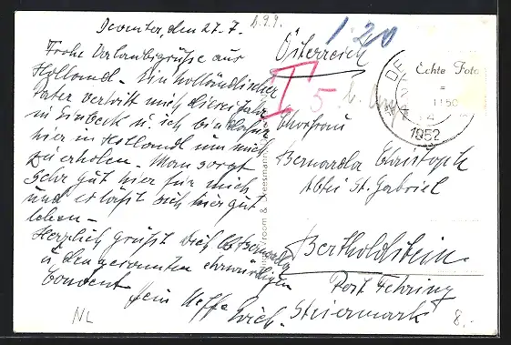 gelaufen 1952, Briefmarke entfernt, Eckknick unten li., guter Zustand