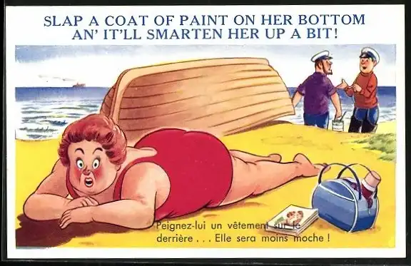 AK Dicke Frau am Strand