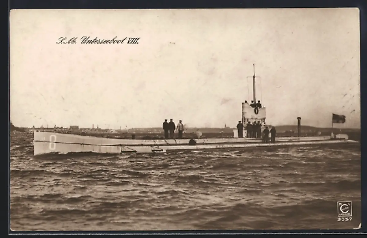 AK Die Mannschaft des U-Bootes U-8 steht auf dem Deck