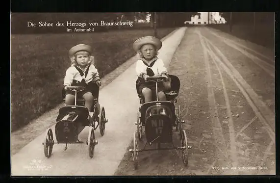 AK Die Söhne des Herzogs von Braunschweig im Automobil, Spielzeug