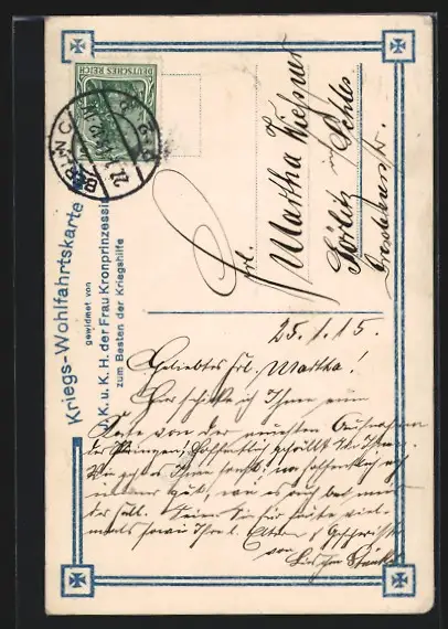 alte Ansichtskarte, gelaufen 1915, Eckknick li. oben, guter Zustand