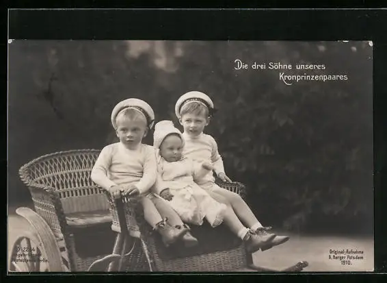 AK Die drei Söhne des Kronprinzenpaares auf einer Kinderkutsche