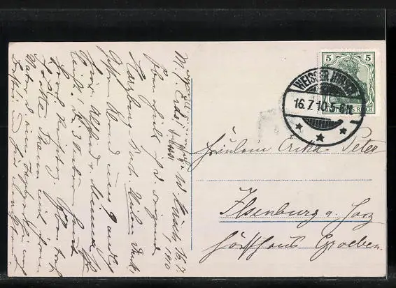 alte Ansichtskarte, gelaufen 1910, guter Zustand