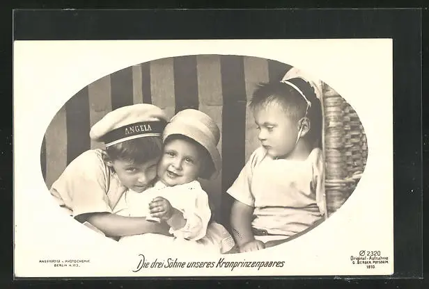 AK Die drei Söhne des Kronprinzenpaares im Strandkorb