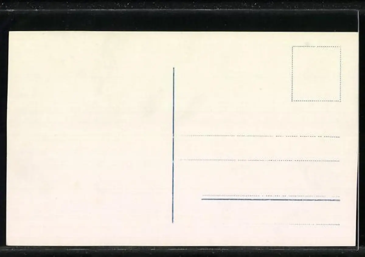 Personenbezogene Daten auf der Rückseite der Karte wurden durch blauen Textmarker unkenntlich gemacht. Die blauen Stellen sind auf die Vorderseite durchgeweicht und wirken sich negativ auf das Postkartenfoto aus