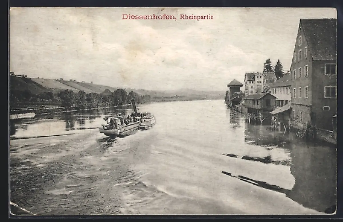 AK Diessenhofen, Rheinpartie mit Dampfer