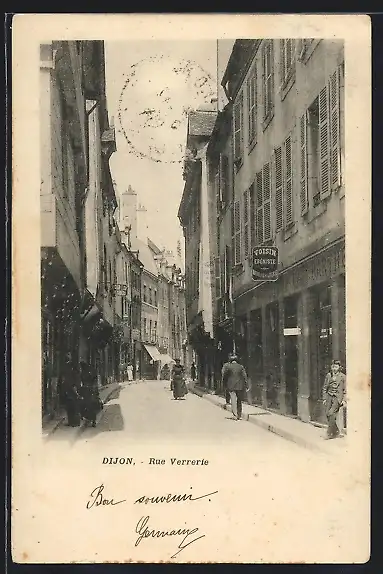 AK Dijon, Rue Verrerie avec piétons et bâtiments anciens