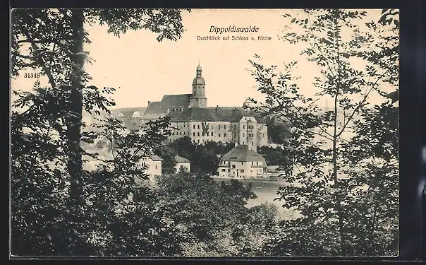 AK Dippoldiswalde, Durchblick auf Schloss und Kirche