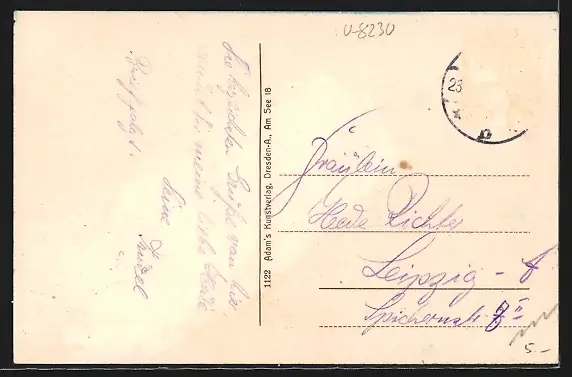 alte Ansichtskarte, gelaufen, Briefmarke entfernt, guter Zustand