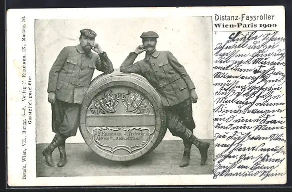 AK Distanz-Fassroller Wien-Paris 1900, F. Enzmann und J. Trebsche