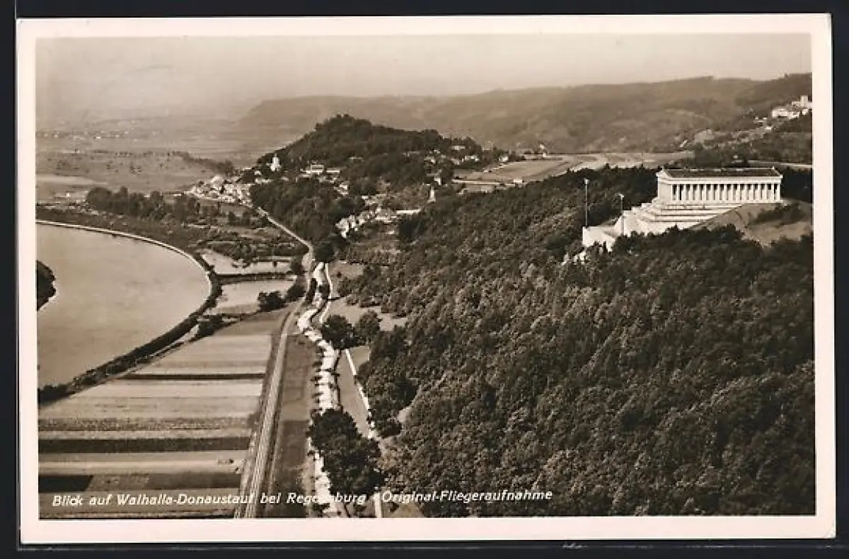 AK Donaustauf bei Regensburg, Fliegeraufnahme des Ortes