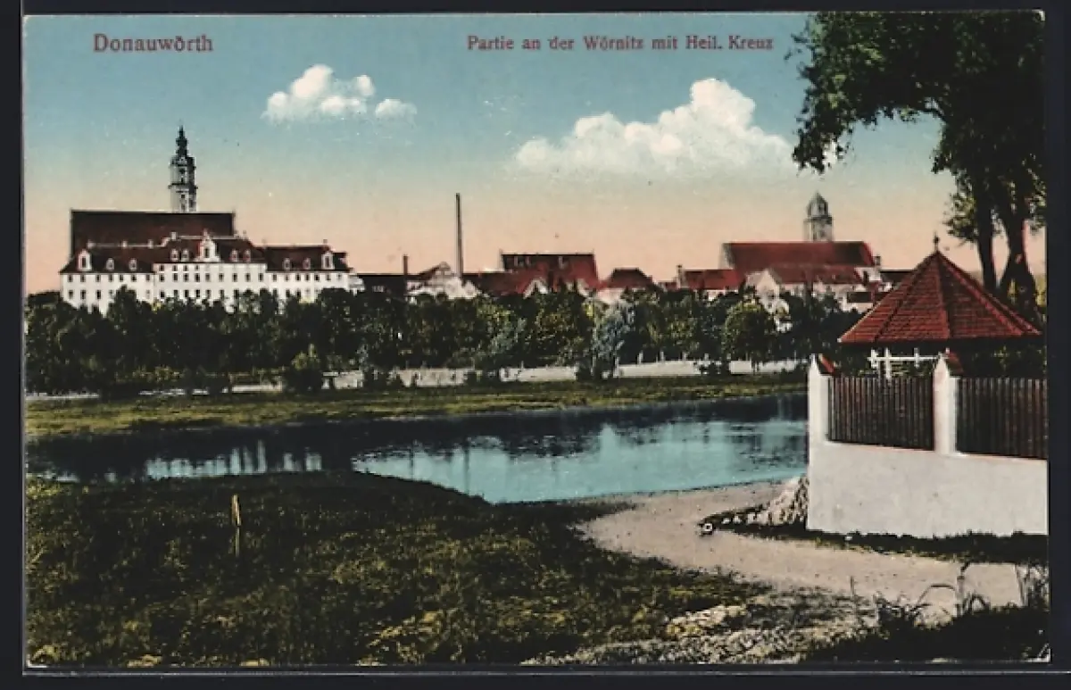 AK Donauwörth, Partie an der Wörnitz mit Heilig Kreuz