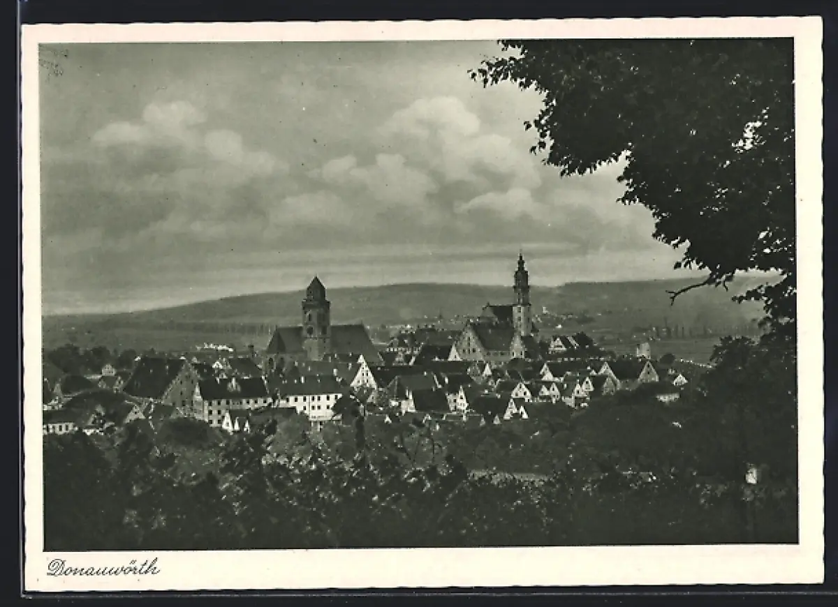 AK Donauwörth, Stadtansicht mit Kirche und historischen Gebäuden