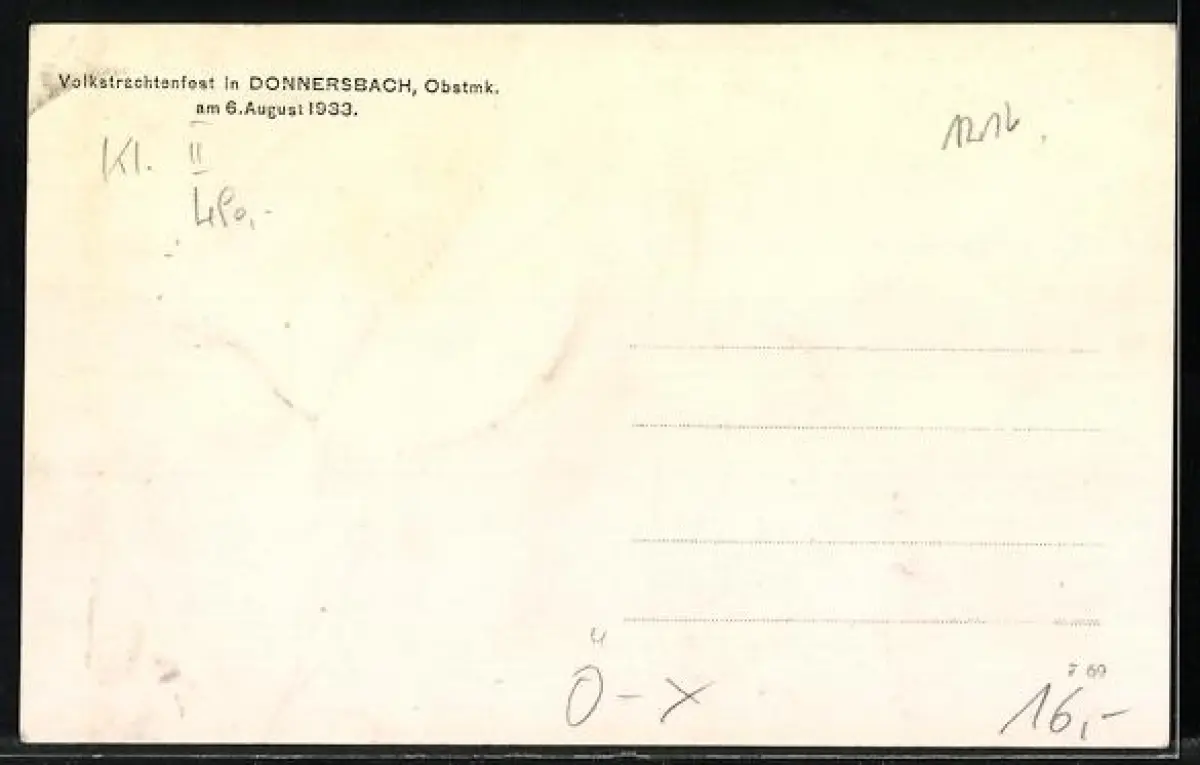 AK Donnersbach /Stmk., Volkstrachtenfest am 6. August 1933, Festwagen