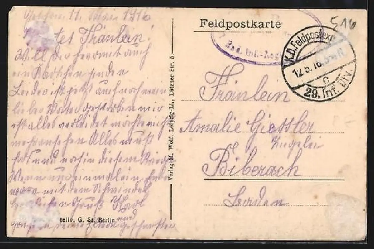 gelaufen 1916, rückseitig Klebe- und Papierreste, rückseitig Oberflächenschaden, Eckknick li. oben, guter Zustand