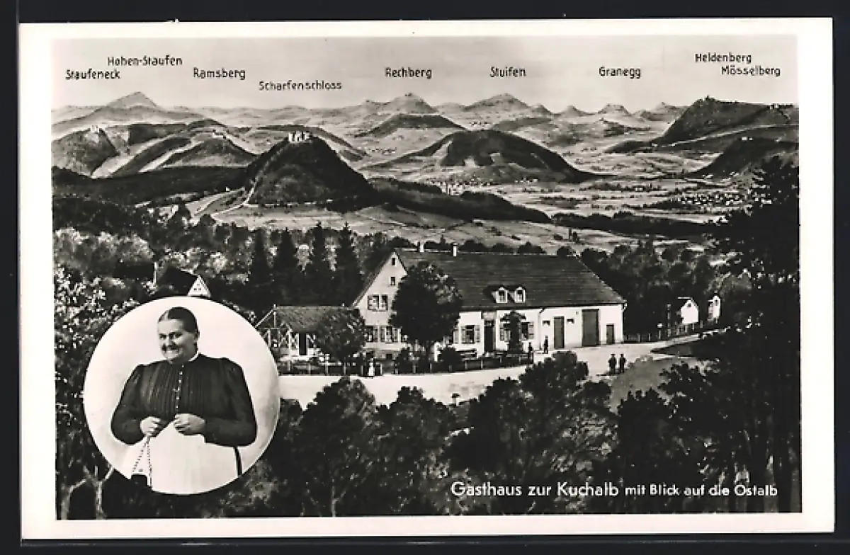 AK Donzdorf, Gasthaus zur Kuchalb mit Blick auf die Ostalp