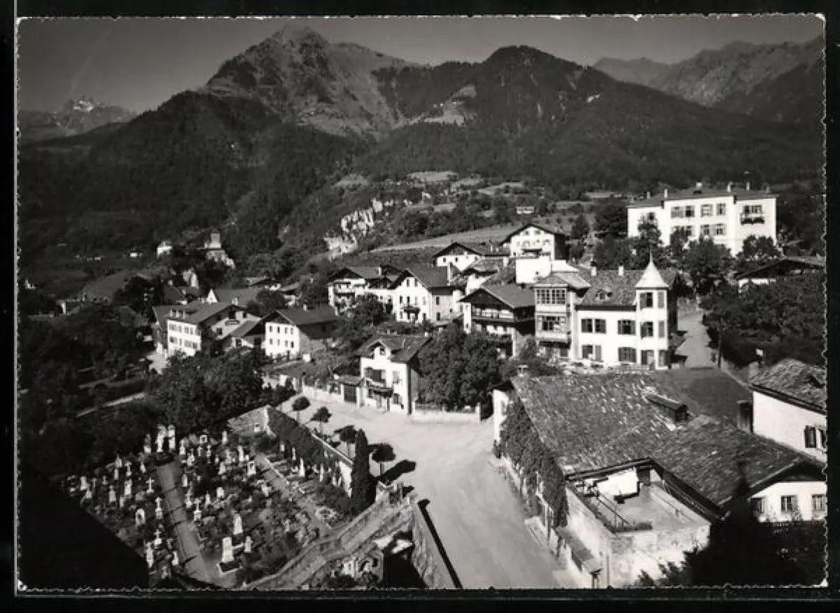 AK Dorf Tirol bei Meran, Strassenpartie mit Friedhof