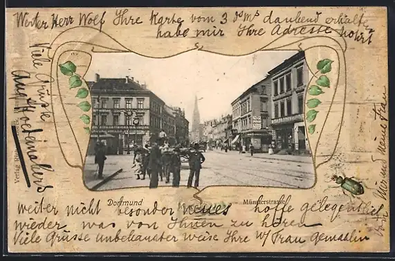 AK Dortmund, Münsterstrasse im Passepartout mit Käfer