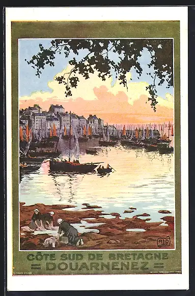 AK Douarnenez, Uferpartie mit Blick zum Ort