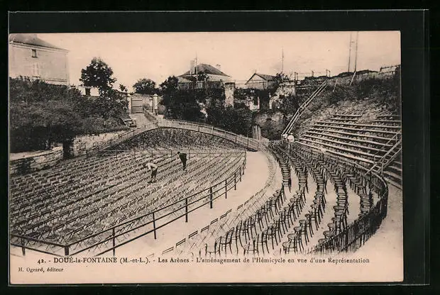 AK Doue-la-Fontaine, Les Arenes, L`amenagement de l`Hemicycle en vue d`une Representation