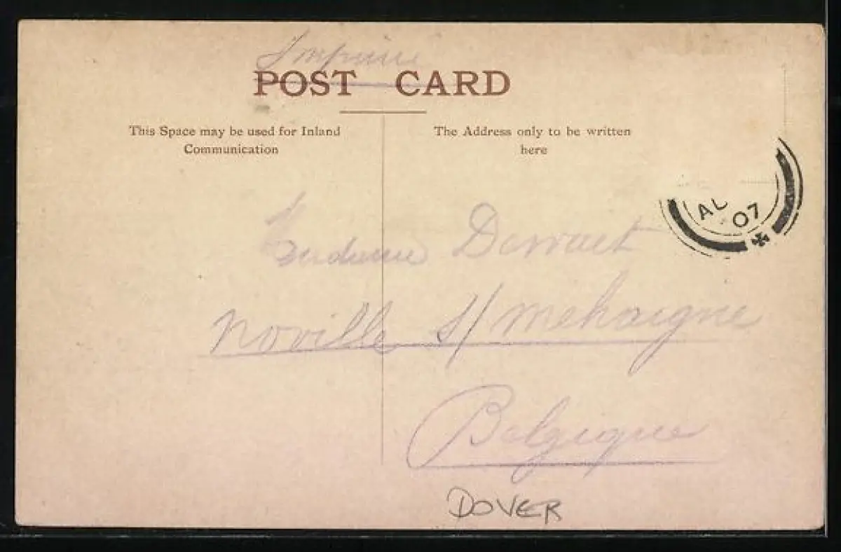 alte Ansichtskarte, gelaufen 1907, Briefmarke entfernt, rückseitig Oberflächenschaden, Bugspur li. oben, guter Zustand