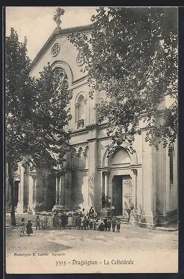 AK Draguignan, La Cathédrale et groupe d`enfants devant l`entrée
