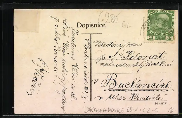 AK Drahanovice, Nádrazi a cetnicka stanice, Kostel, skola a fara, C. K. priv. Cukrovar