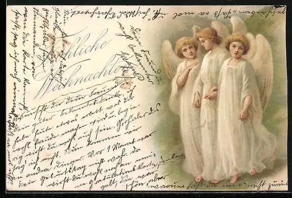 AK Drei Engel laufen Hand in Hand, Fröhliche Weihnachten