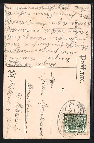 alte Ansichtskarte, gelaufen, Eckknicke li. oben, Bugspur li. oben, guter Zustand