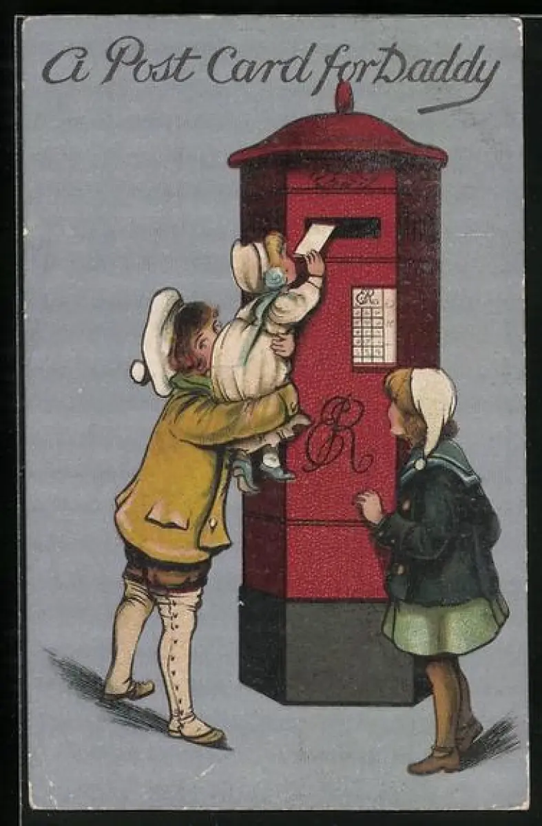 AK Drei Kinder an einem Briefkasten, A Post Card for Daddy