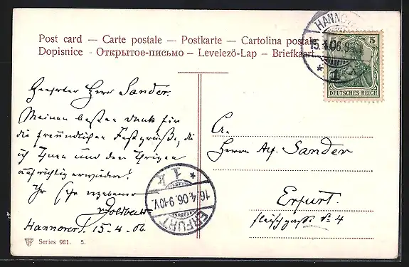 alte Ansichtskarte, gelaufen 1906, Stempelspur, guter Zustand