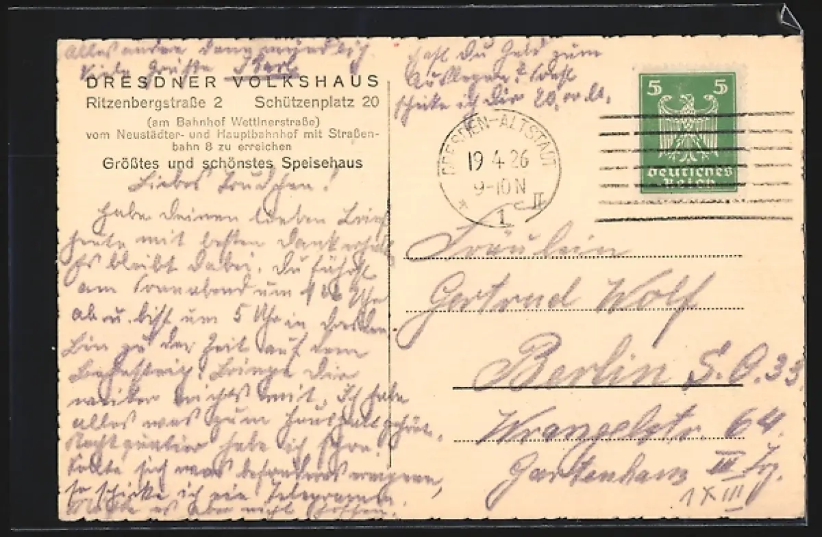 alte Ansichtskarte, gelaufen 1926, guter Zustand