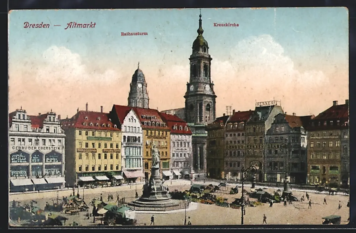 AK Dresden, Altmarkt, Rathausturm, Kreuzkirche
