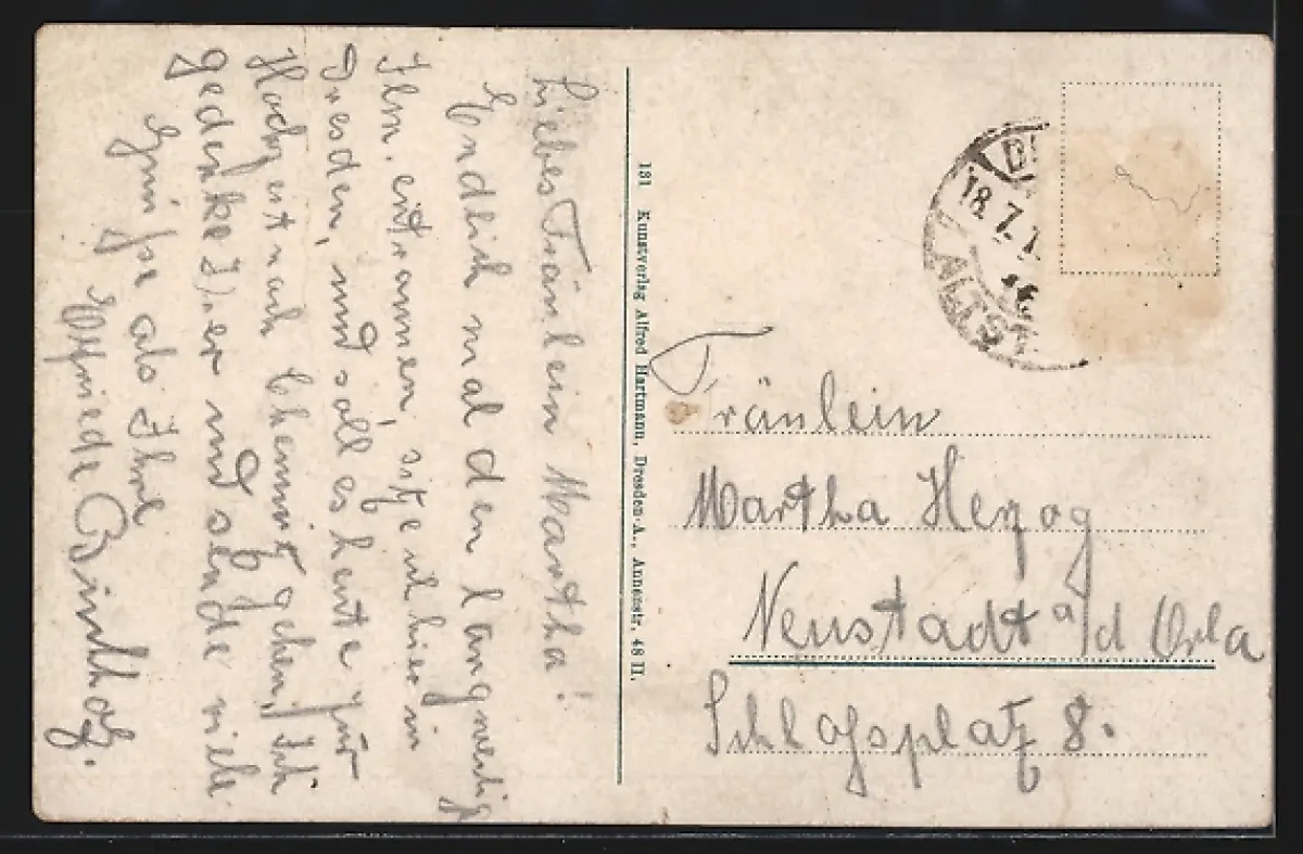 alte Ansichtskarte, gelaufen, Briefmarke entfernt, guter Zustand