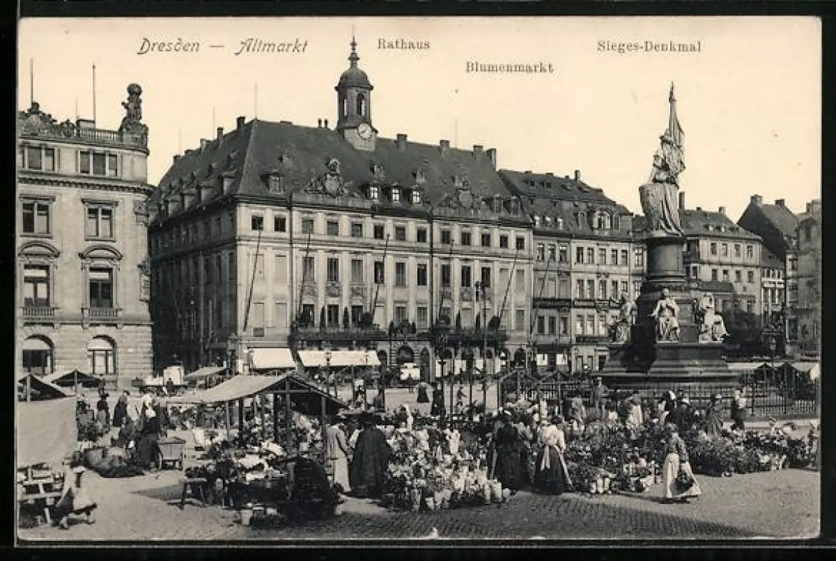 AK Dresden, Altmarkt mit Rathaus und Blumenmarkt