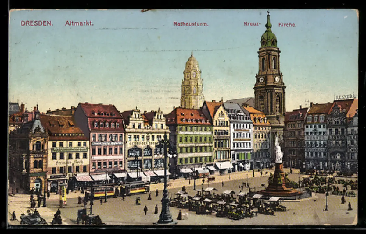 AK Dresden, Altmarkt mit Rathausturm und Kreuzkirche