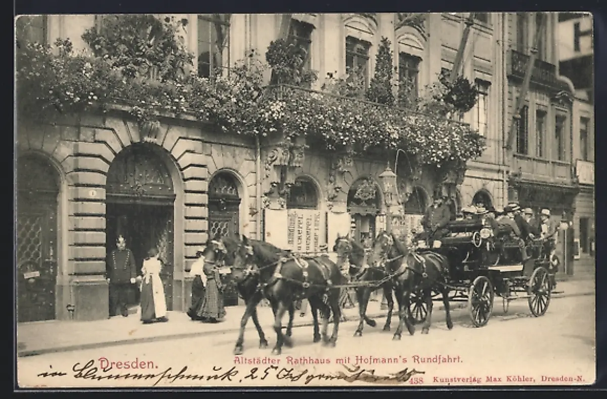 AK Dresden, Altstädter Rathaus mit Hofmann`s Rundfahrt