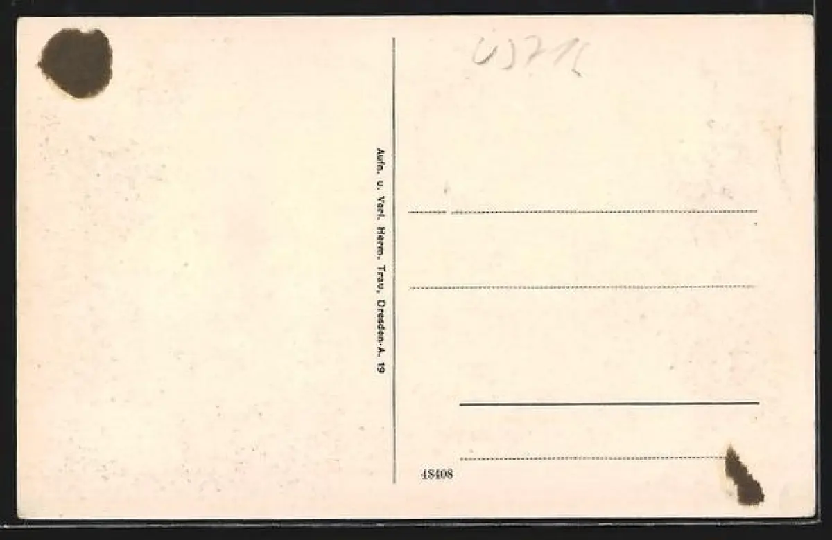 alte Ansichtskarte, ungelaufen, rückseitig Klebe- und Papierreste, guter Zustand