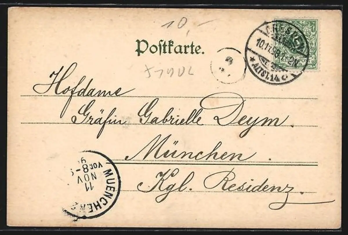 alte Ansichtskarte, gelaufen 1898, Stempelspur, Eckknick links oben, guter Zustand