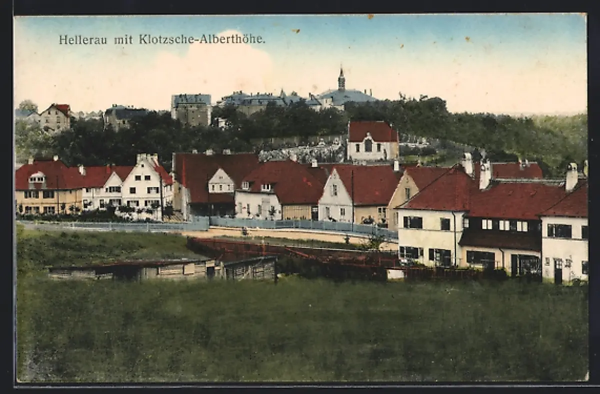 AK Dresden-Hellerau, Ortsansicht mit Klotzsche-Alberhöhe