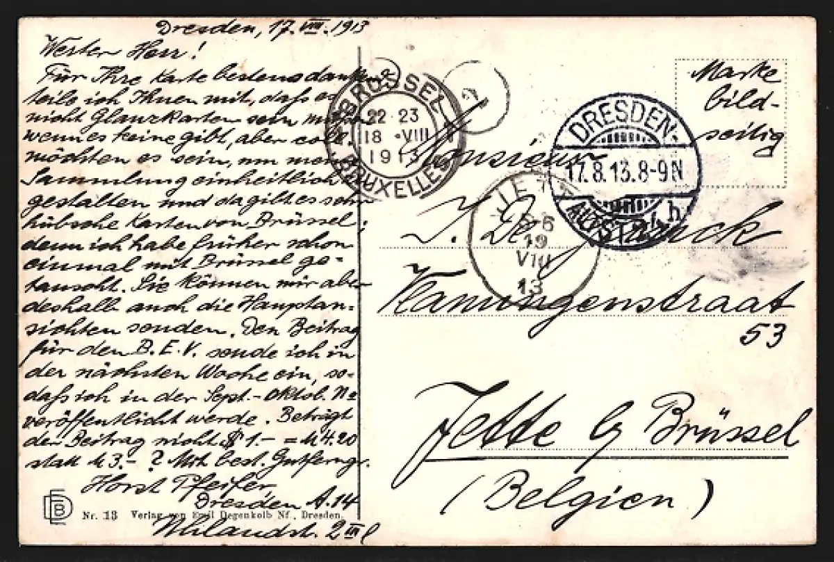 gelaufen 1913, Eckknick li. oben, Stempelspur, guter Zustand