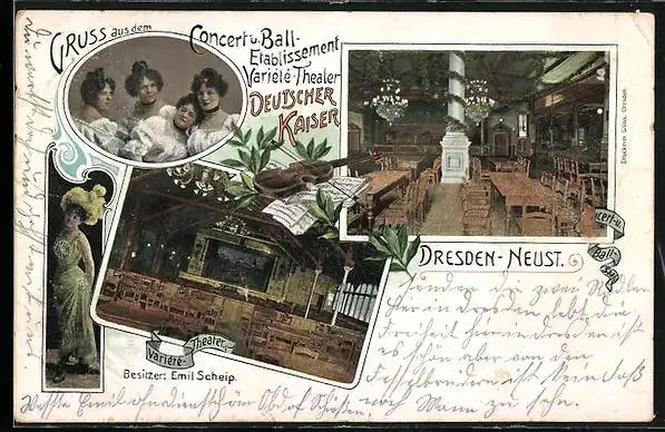 AK Dresden-Neustadt, Concert- & Ball-Etablissement Variété-Theater Deutscher Kaiser, Innenansichten