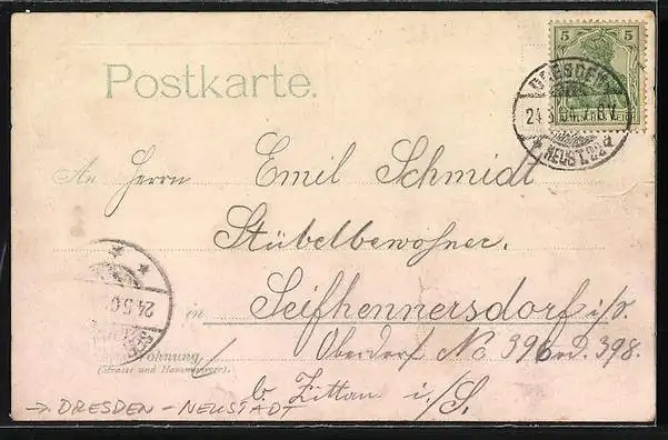 alte Ansichtskarte, gelaufen 1904, Eckknick li. oben, Bugspur re. mittig, guter Zustand