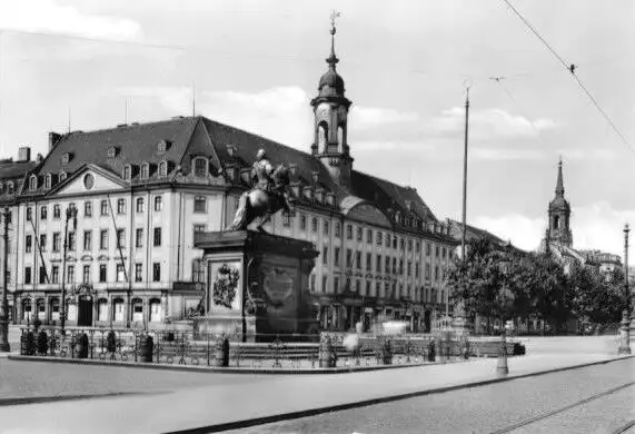 Ansichtskarte Dresden Neustädter Rathaus und Denkmal August des Starken vor der Zerstörung 1945 Erhaltung I-II ungelaufen Druckvermerk: 1986 Herstellungsland: DDR Verlag: VEB-Foto-Verlag, 9658 Erlbach i. V. - 07 12 31 218 Foto: Deutsche Fotothek Dresden (Hahn)
