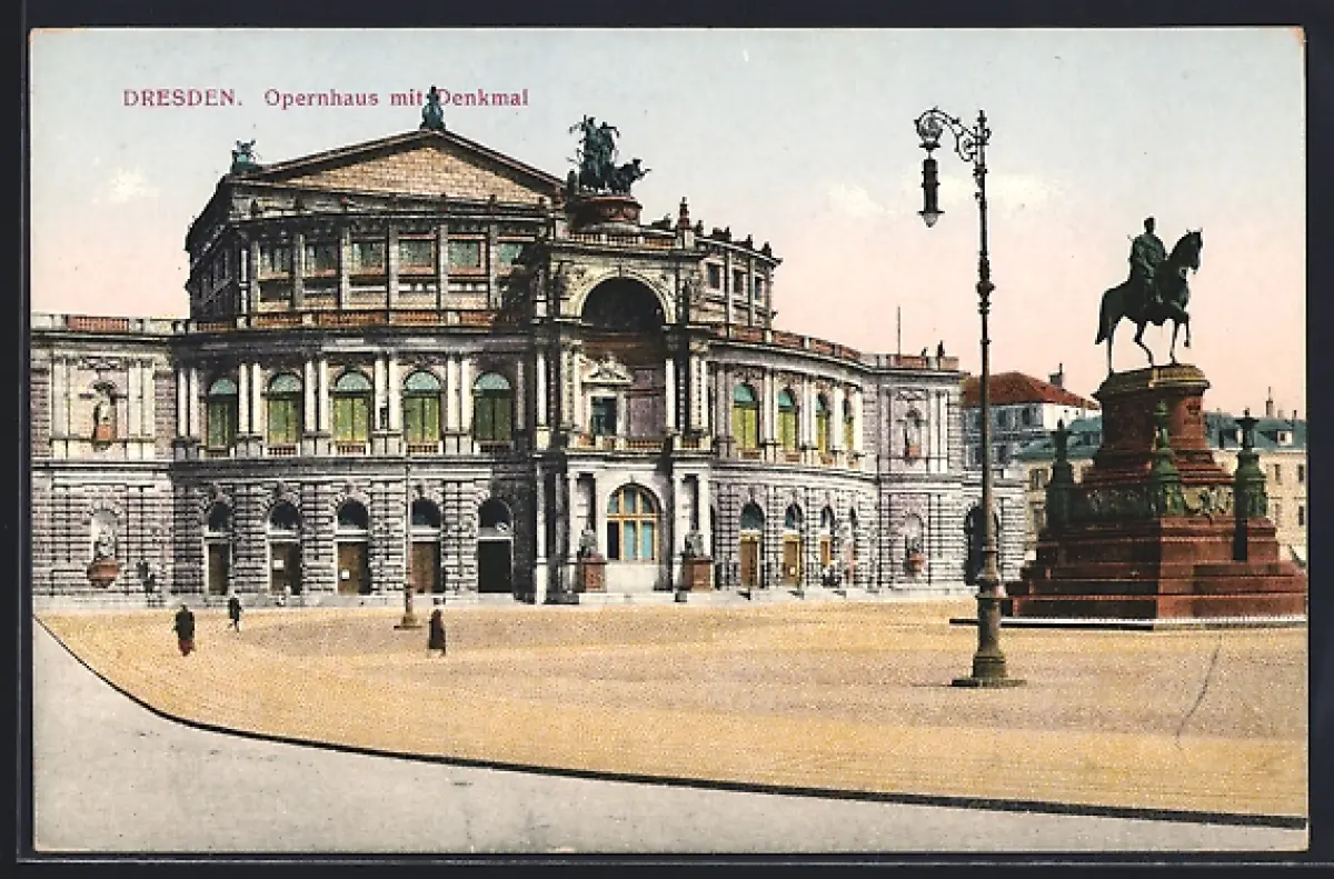 AK Dresden, Opernhaus mit Denkmal