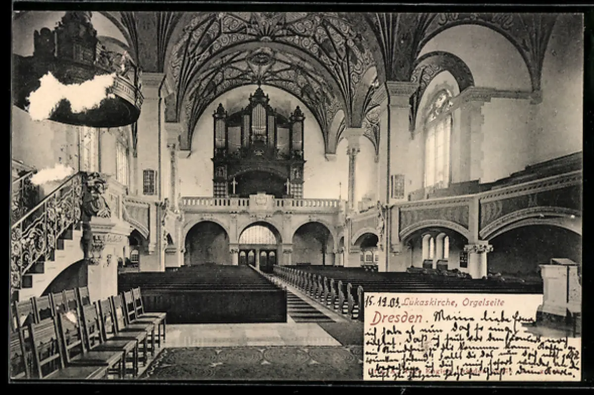 AK Dresden-Plauen, Lukaskirche, Orgelseite