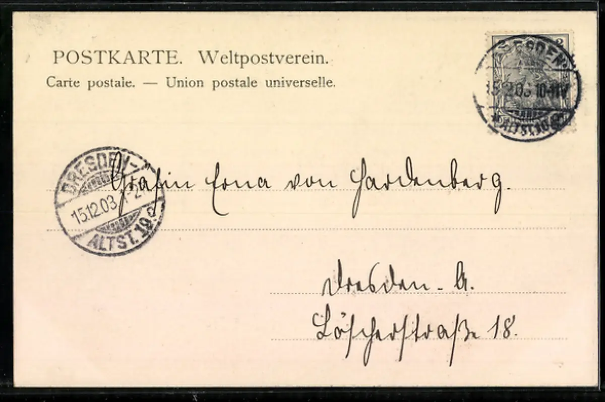 alte Ansichtskarte, gelaufen 1903, guter Zustand