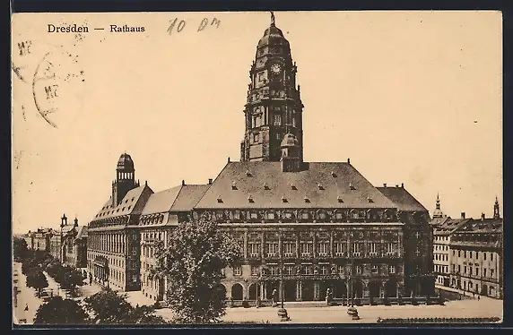 AK Dresden, Rathaus und Strassenpartie