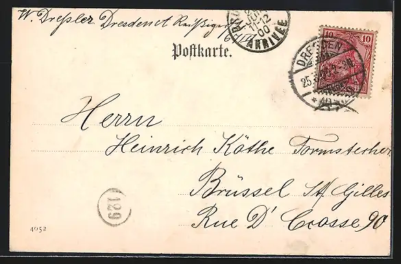 alte Ansichtskarte, gelaufen 1900, guter Zustand